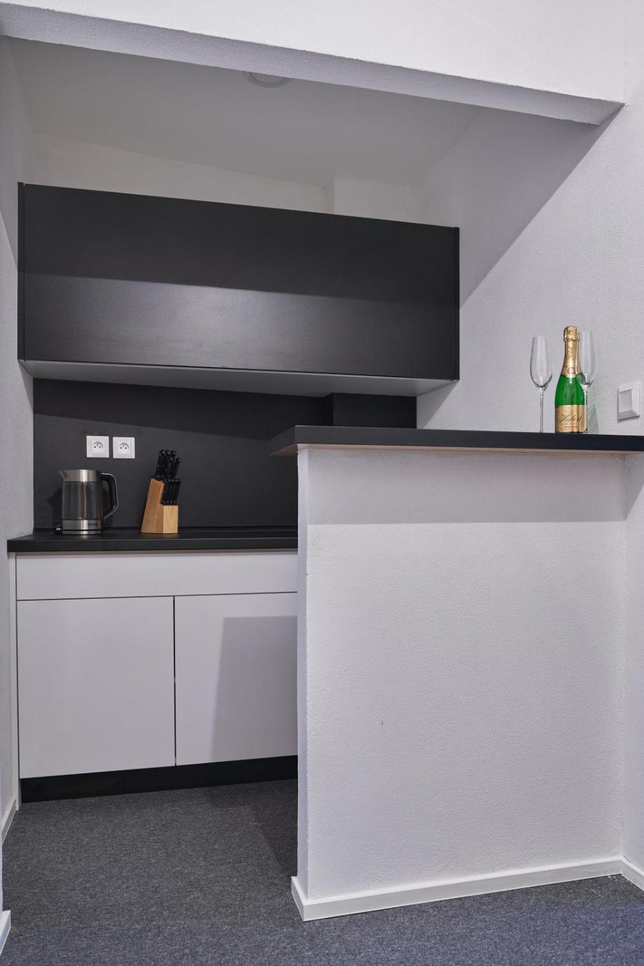 One-Bedroom Apartment. The apartments kitchen, which features a refrigerator and a microwave, is available for cooking and storing food. This apartment has a tea and coffee maker, flat-screen TV with streaming services, mountain views, as well as winechampagne for guests. The unit has 2 beds.