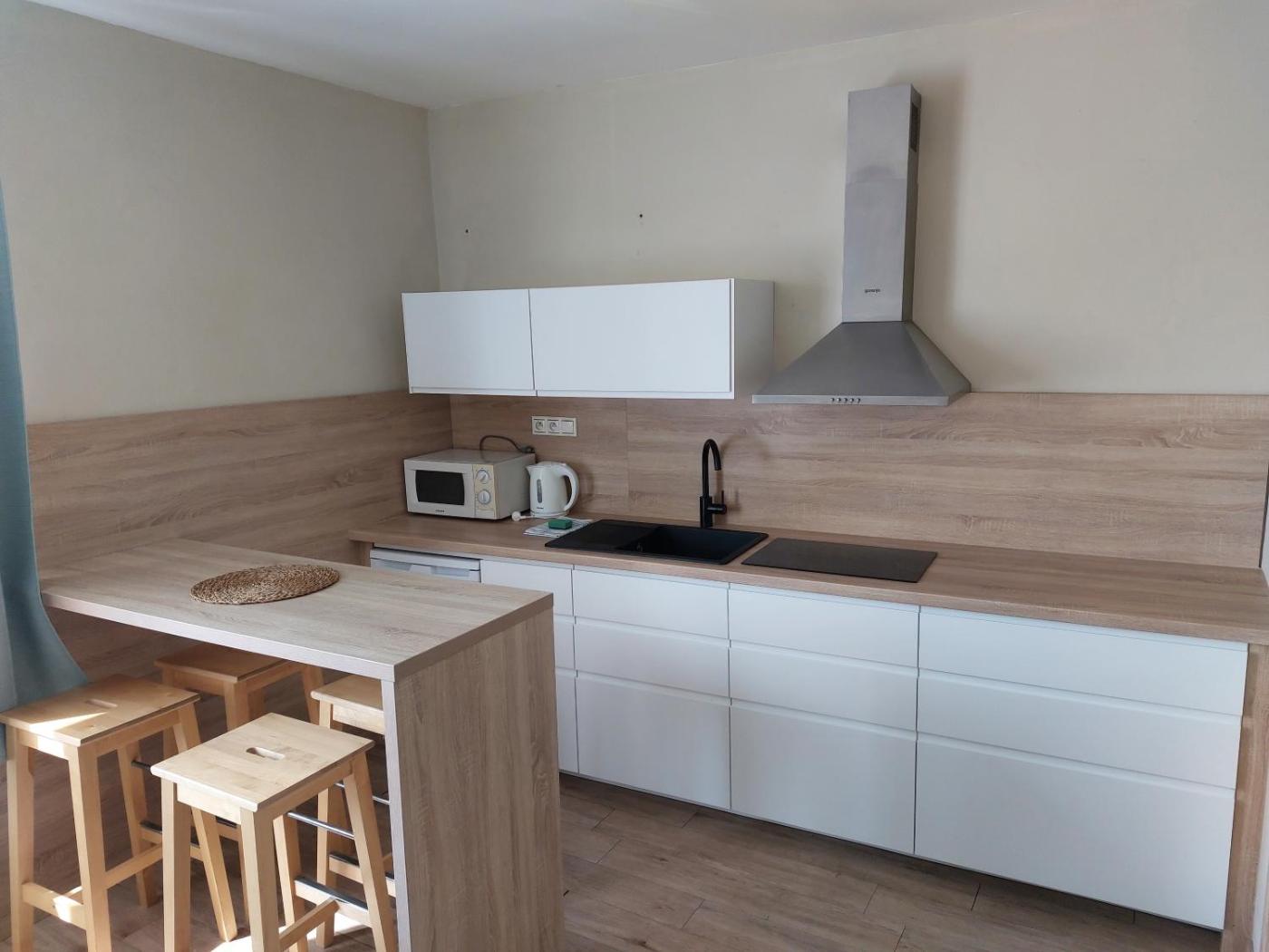 Superior One-Bedroom Apartment. Spacious apartment featuring a fully equipped kitchen, a living room with sofa bed and a bathroom with shower and toilet.